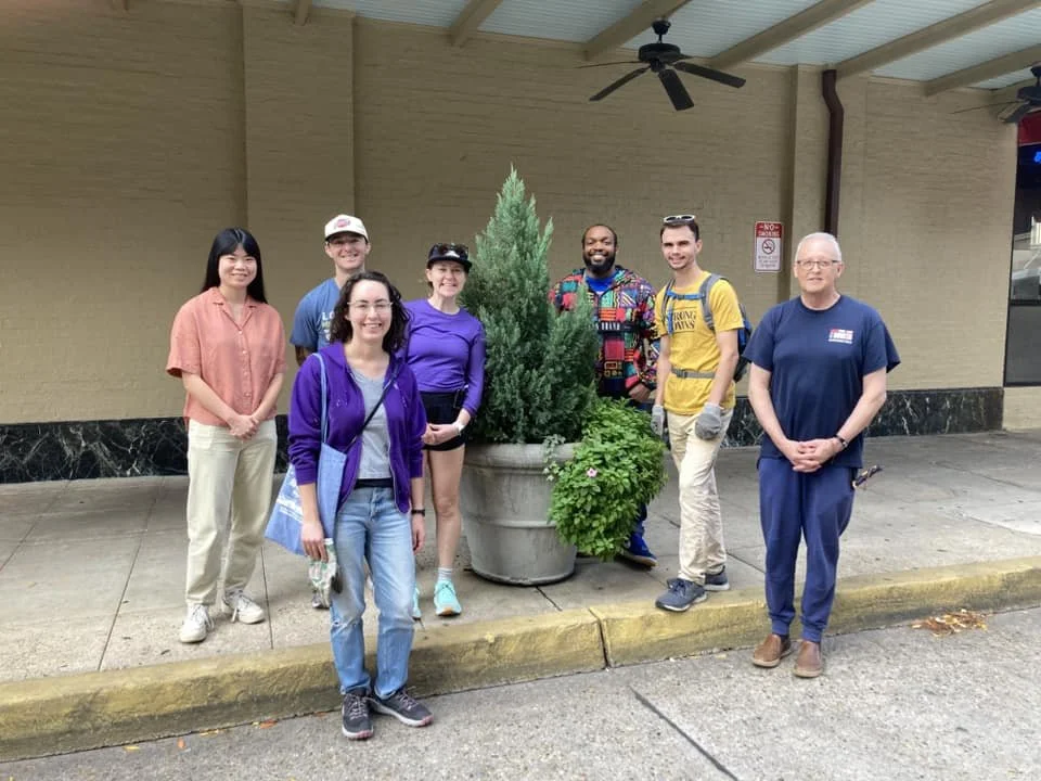Strong Towns volunteers cleaning up the Downtown Greenway in downtown Baton Rouge.